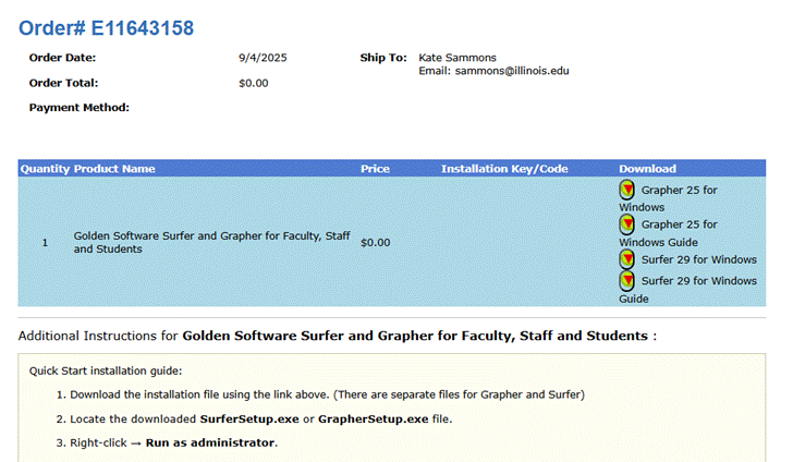 1. Download the desired installation files from your WebStore Order History. (There are separate files for Grapher and Surfer) |