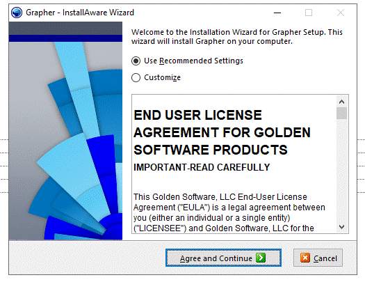 2. The Install Wizard will open. Accept the default settings, agree to the EULA, and click the button to continue. |