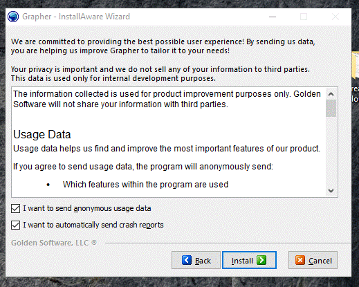 2. Select your Usage Data preferences (optional participation) and click Install.
